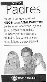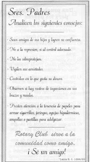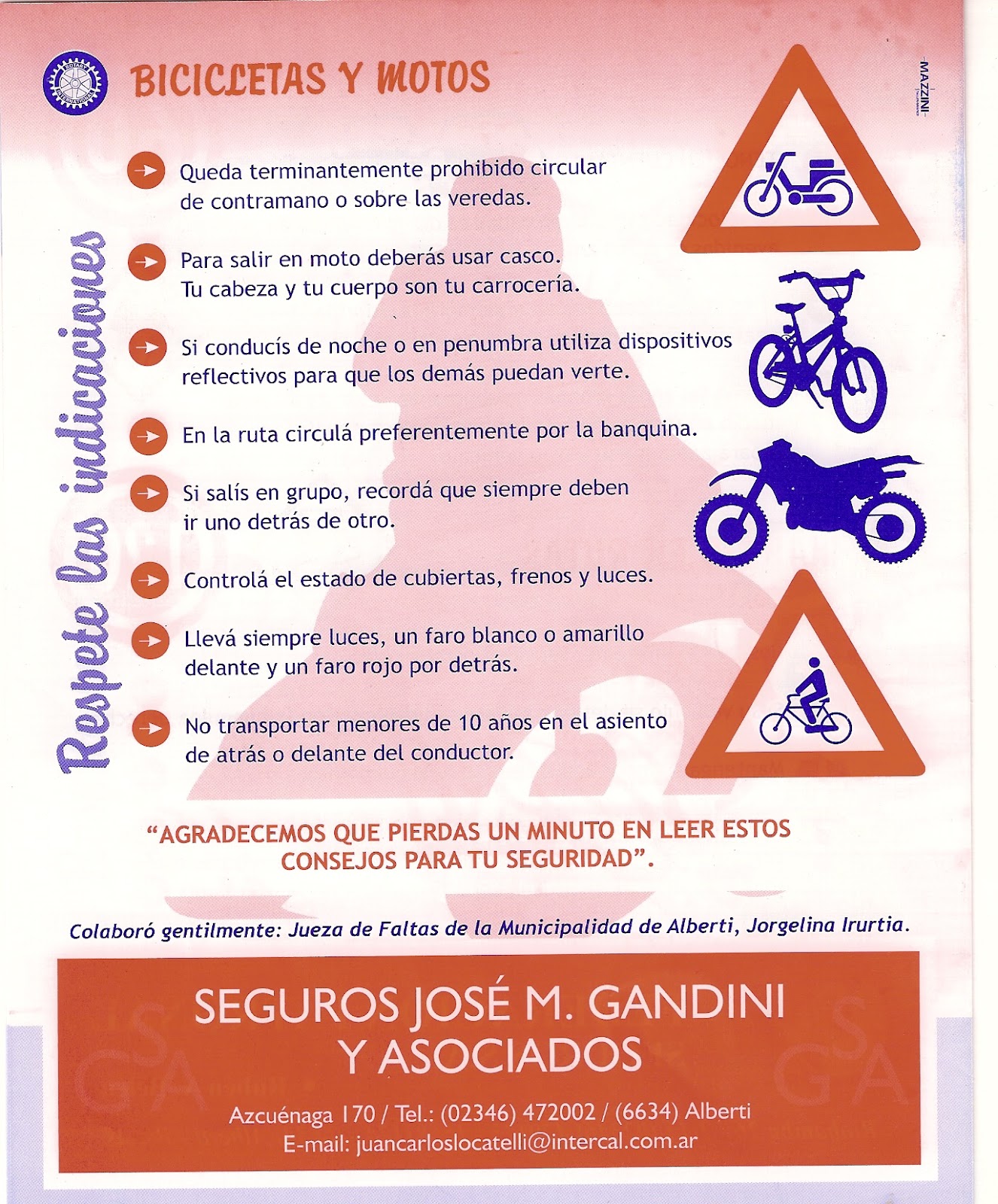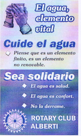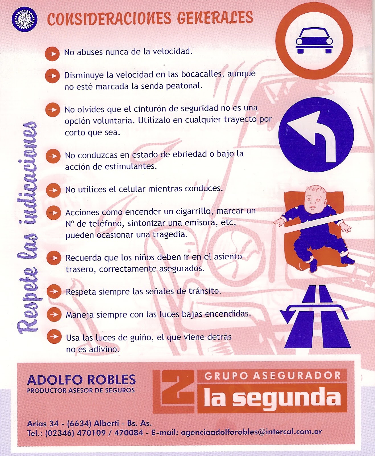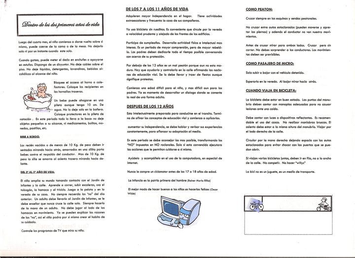 En el marco del lema de quien fuera presidente de Rotary International - D. K. Lee-, que nos instaba a poner énfasis en el trabajo para mitigar el hambre y evitar la mortalidad infantil, nuestro club quiso aportar su granito de arena realizando una cartilla con consejos útiles de seguridad de los niños de 0 a 12 años de edad, tanto dentro del hogar, como en la vía pública y como pasajero en automóviles, bicicletas o ciclomotores.