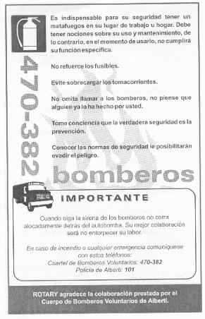 Hemos publicado a lo largo de los últimos años, distintas cartillas de prevención y consejos útiles sobre distintos tópicos, tales como: uso racional del agua, seguridad en el tránsito, uso de bicicletas y motos, prevención de incendios, detección de problemas visuales, alcoholismo y drogadicción, etc.